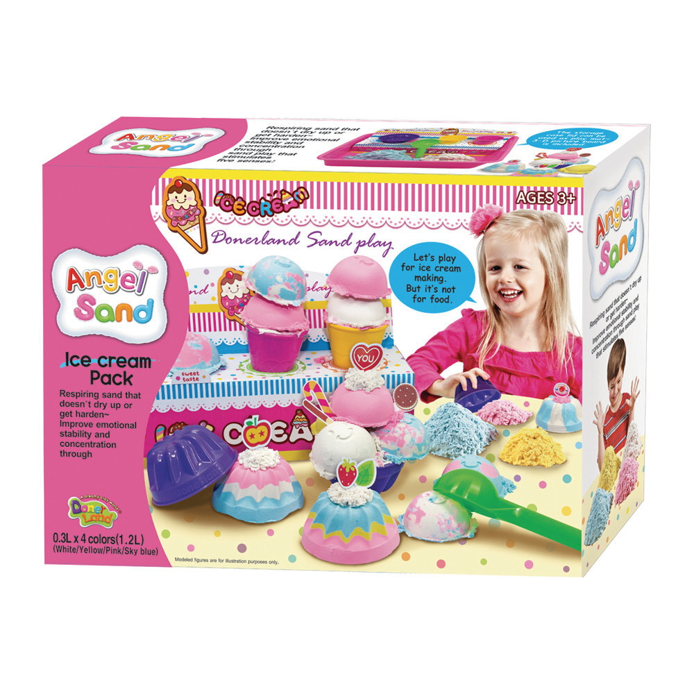 天使動力沙是一種沙子形式的新型黏土,在沒有水的情況下保持固體狀態,也能輕鬆讓它恢復沙子型態。不會沾黏皮膚、好塑型、好清理,不會因為潮濕而結塊,也不會像沙子一吹就散開,天使動力沙擁有非常療癒的觸感,透過玩樂也能提高孩子的創造力跟想像力。天使沙-冰淇淋遊戲組。內容物包含 : 天使沙(白色0.3L、黃色0.3L、粉色0.3L、藍色0.3L)、收納箱、冰淇淋紙盒、模具4個。