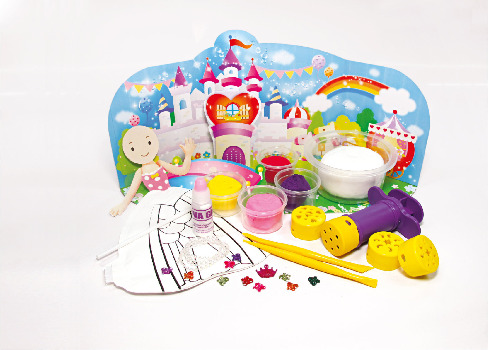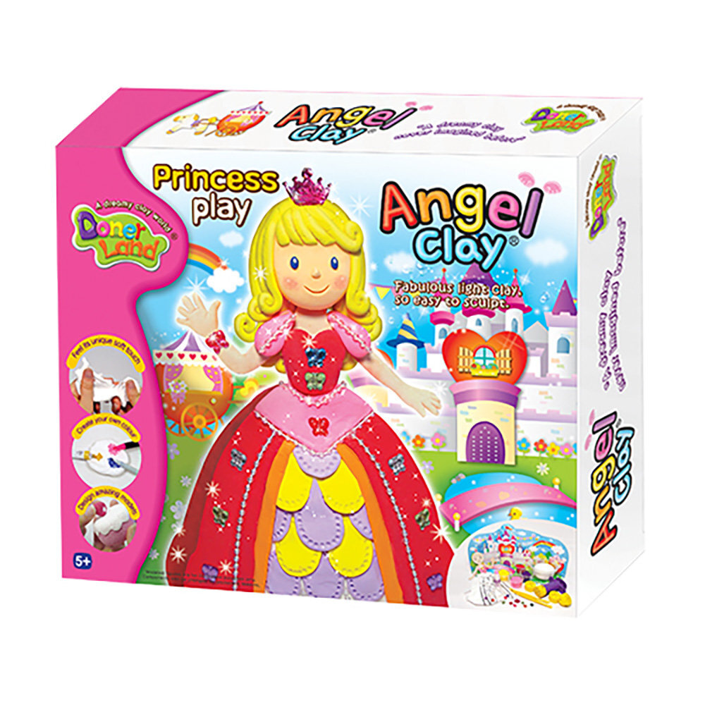 韓國Donerland天使黏土系列 : 天使黏土是一種以最新奈米技術研發的黏土,不沾手、好塑型、比一般黏土輕了1/8的重量。可以依照喜好,用水性顏料染出自己心目中的顏色,包括水彩、麥克筆、螢光筆、彩色筆等。天使黏土很輕,在日本、韓國都相當受小朋友喜愛。天使黏土-公主遊戲。內容物包含 : 天使黏土(白色40g、紅色4g、黃色4g、粉色4g、紫色4g)、黏土工具、擠型工具組、背景板、皇冠裝飾、蝴蝶裝飾、膠水、串珠、說明書。