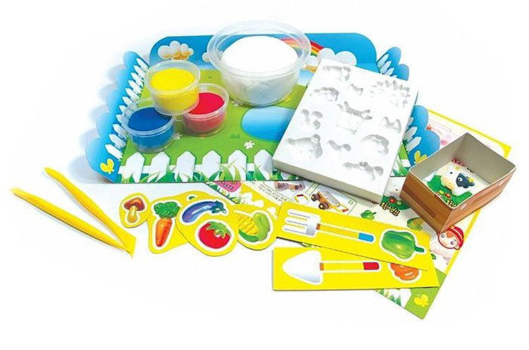 韓國Donerland天使黏土系列 : 天使黏土是一種以最新奈米技術研發的黏土,不沾手、好塑型、比一般黏土輕了1/8的重量。可以依照喜好,用水性顏料染出自己心目中的顏色,包括水彩、麥克筆、螢光筆、彩色筆等。天使黏土很輕,在日本、韓國都相當受小朋友喜愛。天使黏土-動物農場。內容物包含 : 天使黏土(白色40g、紅色4g、黃色4g、藍色4g)、紙質場景、紙質蔬果卡、動物矽膠模型、黏土工具、說明書。
