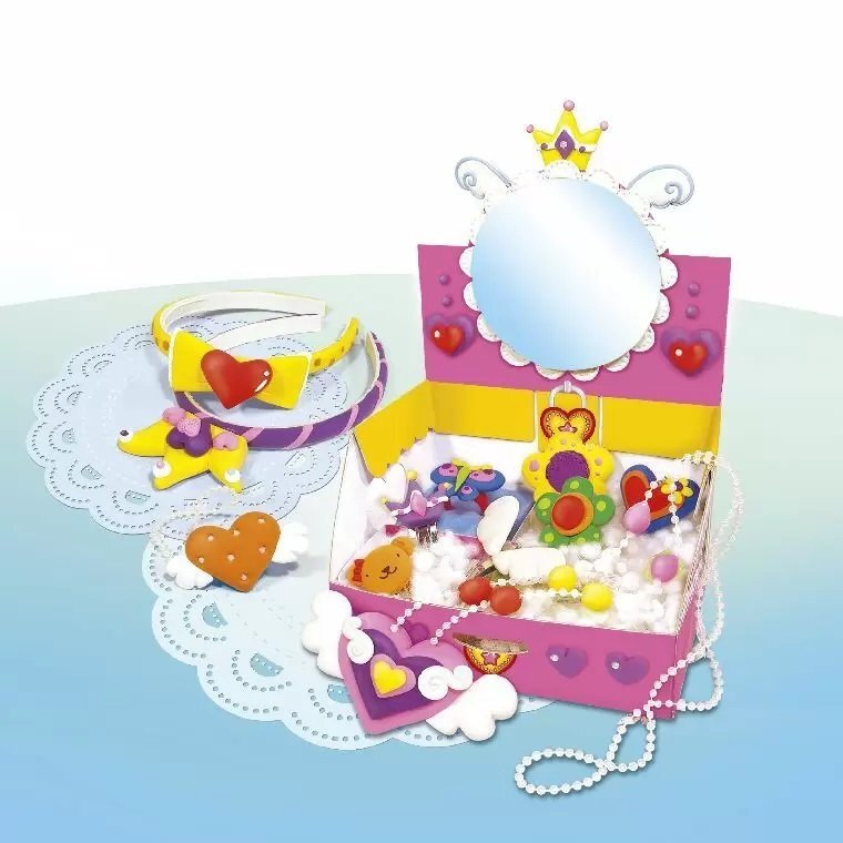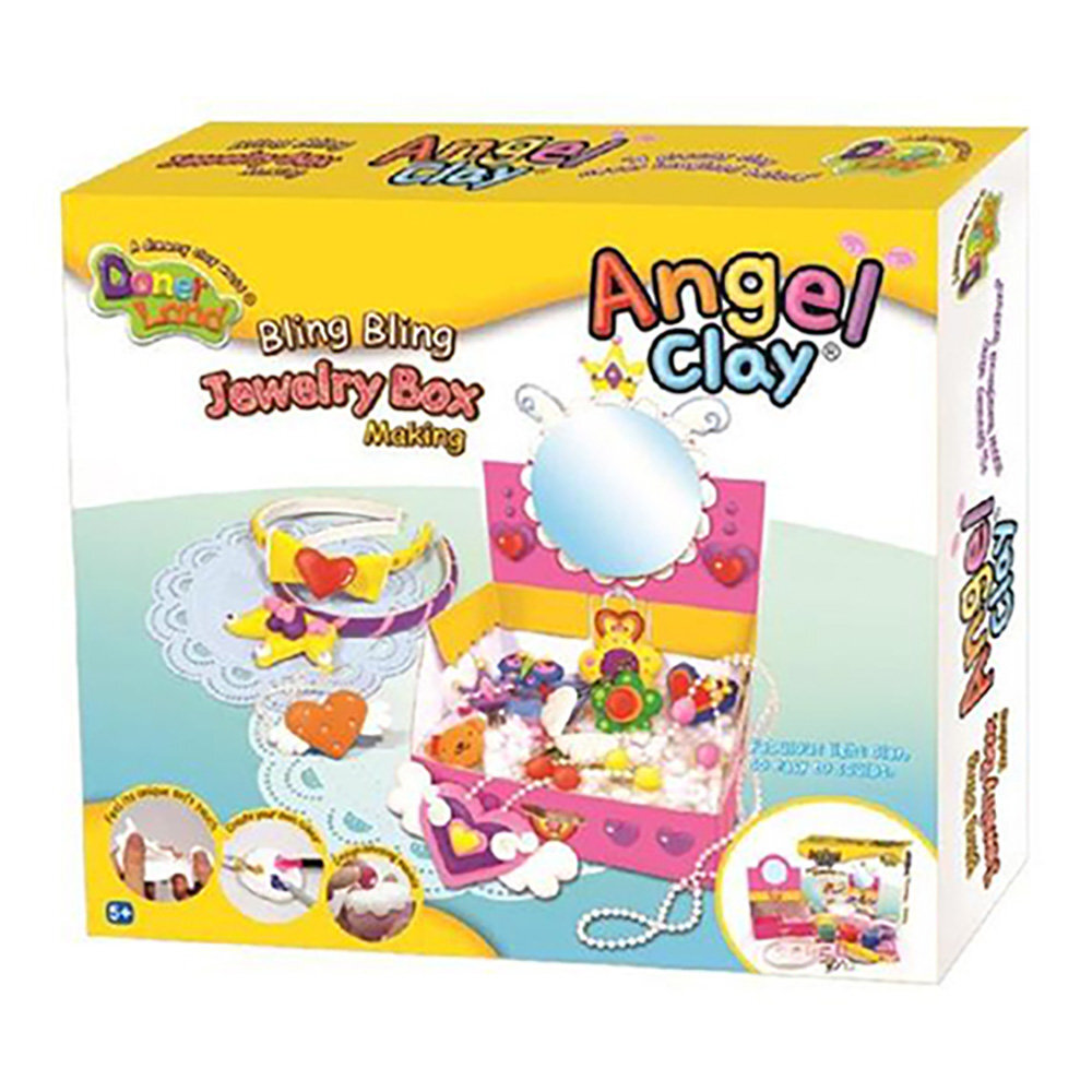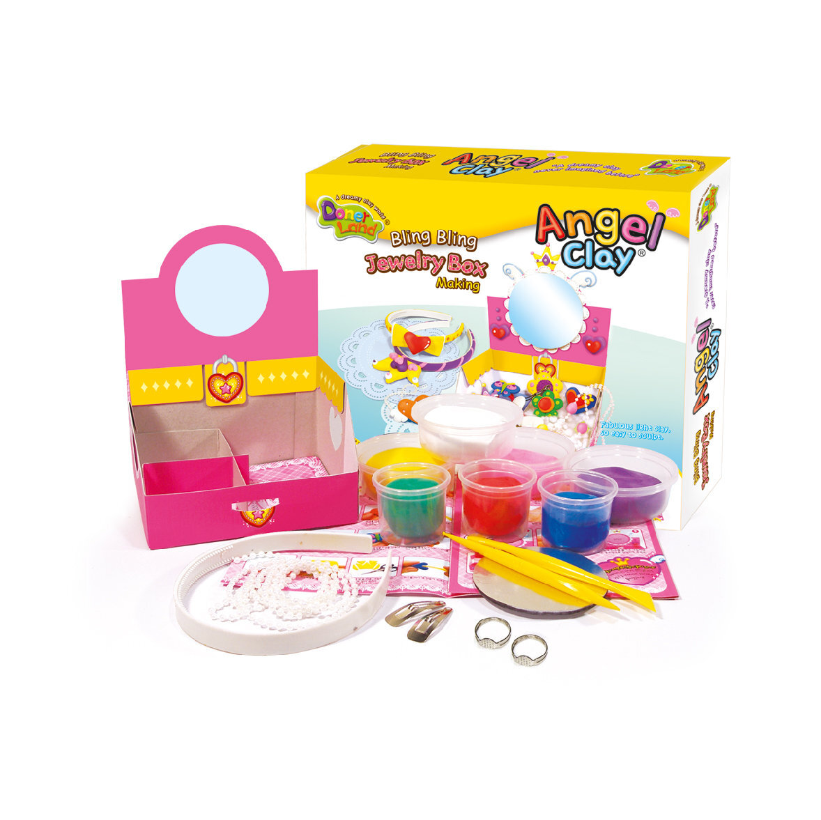 韓國Donerland天使黏土系列 : 天使黏土是一種以最新奈米技術研發的黏土,不沾手、好塑型、比一般黏土輕了1/8的重量。可以依照喜好,用水性顏料染出自己心目中的顏色,包括水彩、麥克筆、螢光筆、彩色筆等。天使黏土很輕,在日本、韓國都相當受小朋友喜愛。天使黏土-珠寶盒。內容物包含 : 天使黏土(白色12g、黃色12g、紫色12g、粉色12g、藍色8g、綠色8g、紅色8g)、黏土工具、紙質珠寶盒、髮箍、鏡子、串珠項鍊、髮夾2、戒指2、說明書