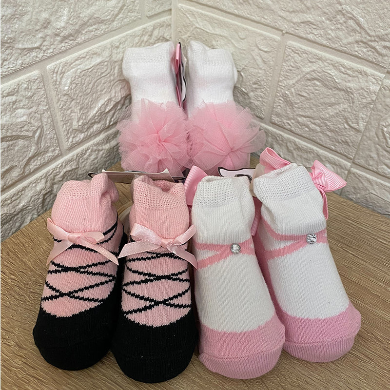 【福利品】美國 Mud Pie 時尚造型棉襪/止滑襪/假鞋襪/嬰兒襪_三入組_粉紅雪紡 芭雷舞者 艾利造型(0-12m)(M-2)