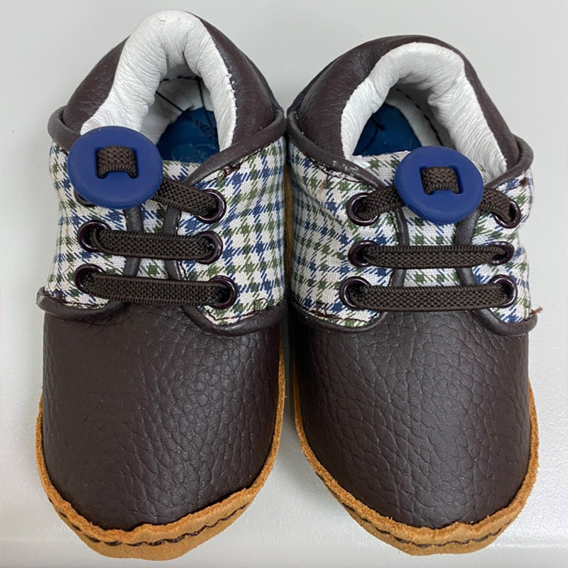 【福利品】美國 Rileyroos 手工真皮無毒學步鞋/童鞋/寶寶鞋/嬰兒鞋_棕色格子(7)