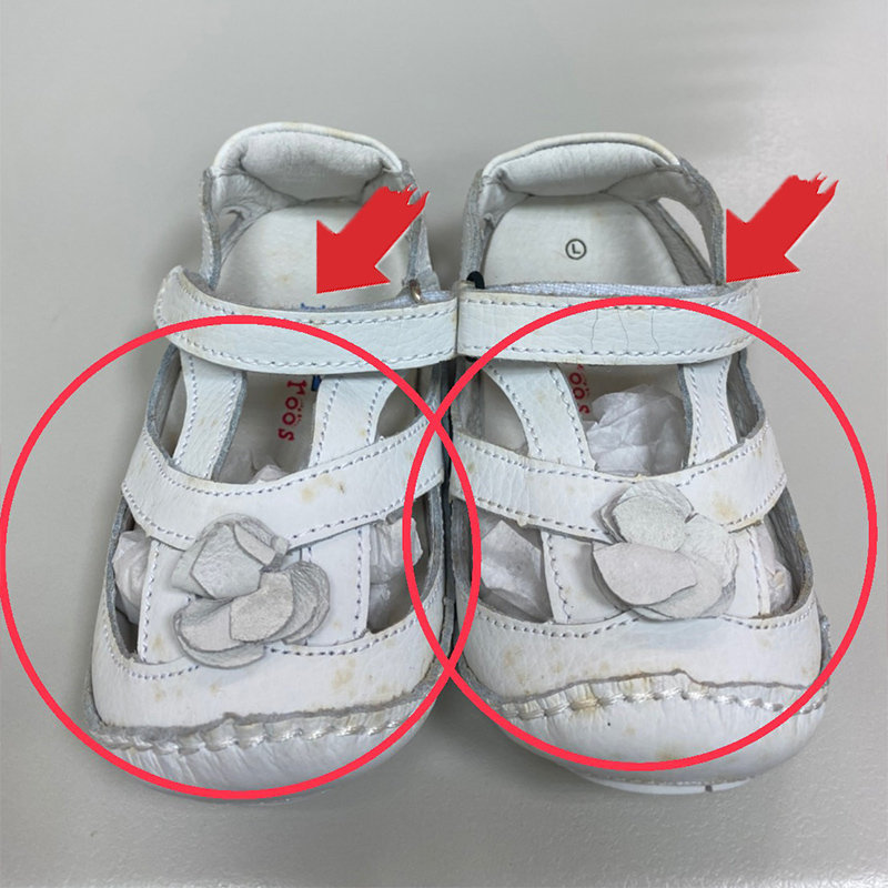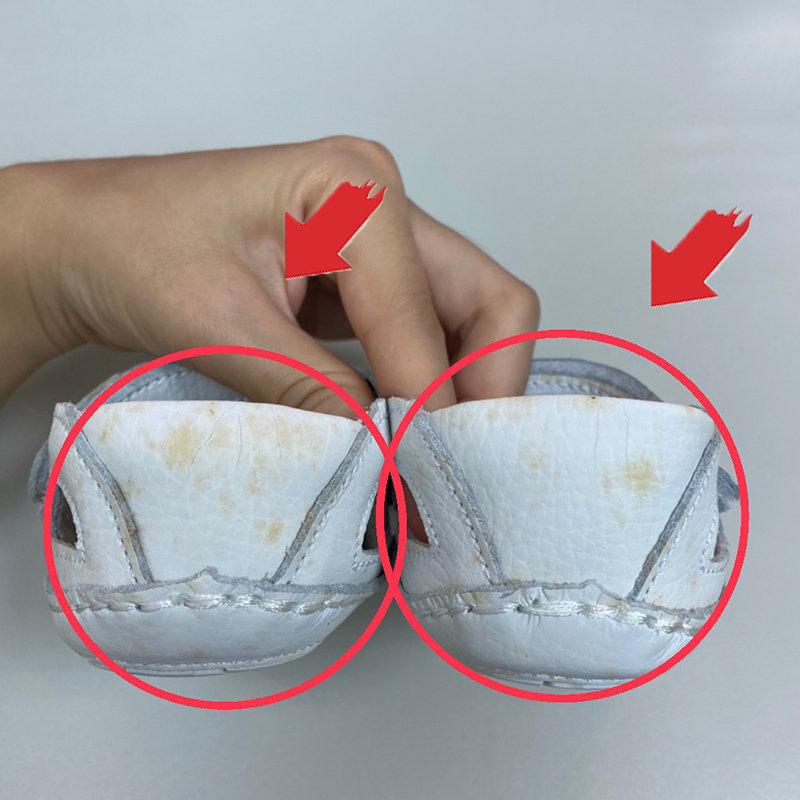 ✿NG福利品:鞋面後腳跟有污漬皮些微龜裂、鞋盒有污漬(瑕疵部分紅圈顯示)