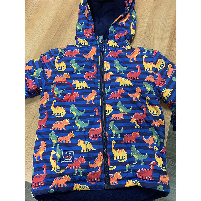 【福利品】英國 JoJo Maman BeBe 雙面穿羊毛襯裡防風/防雨保暖連帽外套_ 恐龍玩耍(JJE4434)(J-28)