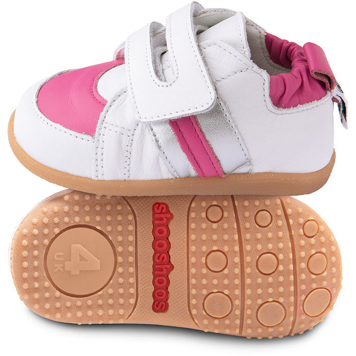 【福利品】英國 shooshoos 健康無毒真皮手工學步鞋/童鞋_白/銀桃紅條紋童鞋_101076 (C-29)