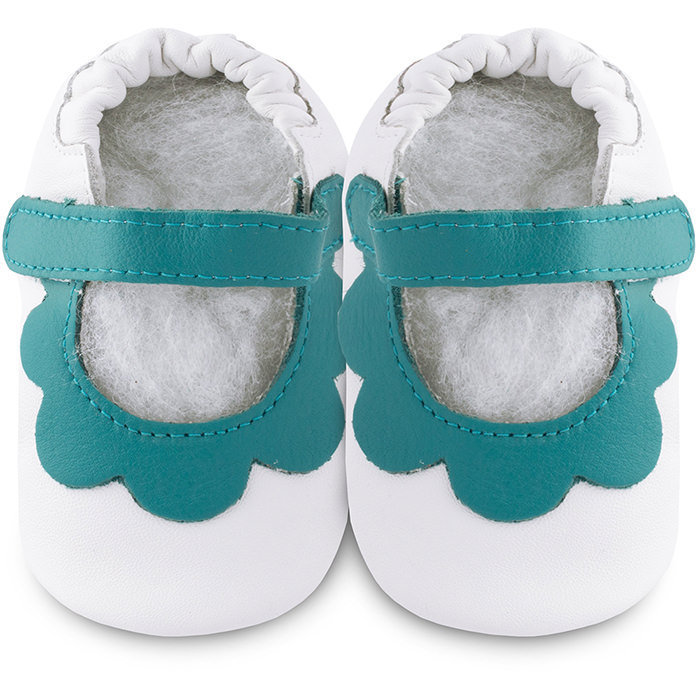 【福利品】英國 shooshoos 健康無毒真皮手工鞋/學步鞋/嬰兒鞋_白色/薄荷綠荷葉_GVWH39S (7)