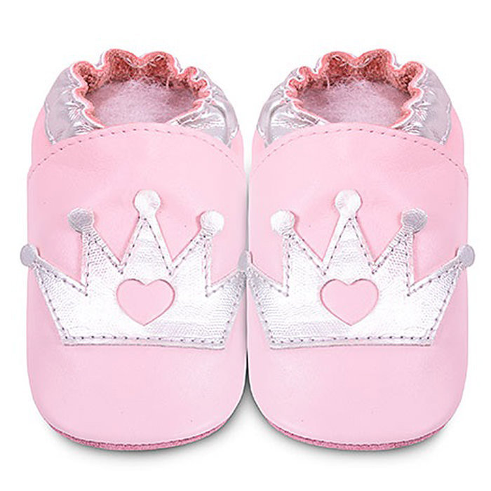 【福利品】英國 shooshoos 健康無毒真皮手工鞋/學步鞋/嬰兒鞋_淡粉銀皇冠_#GPK31 (A-26)