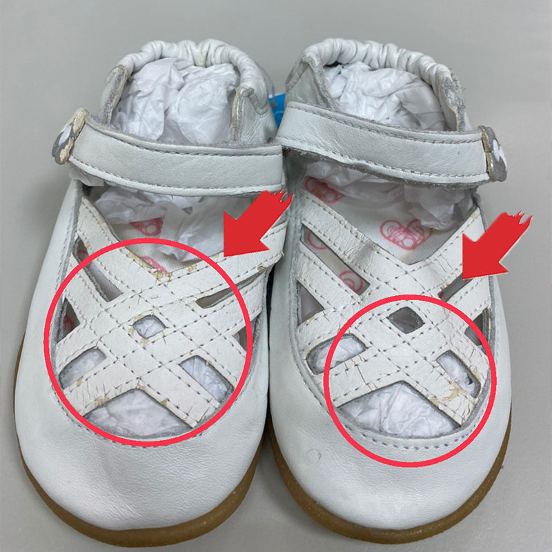 ✿NG福利品:鞋面皮龜裂、銀色的花掉漆(瑕疵部分紅圈顯示)