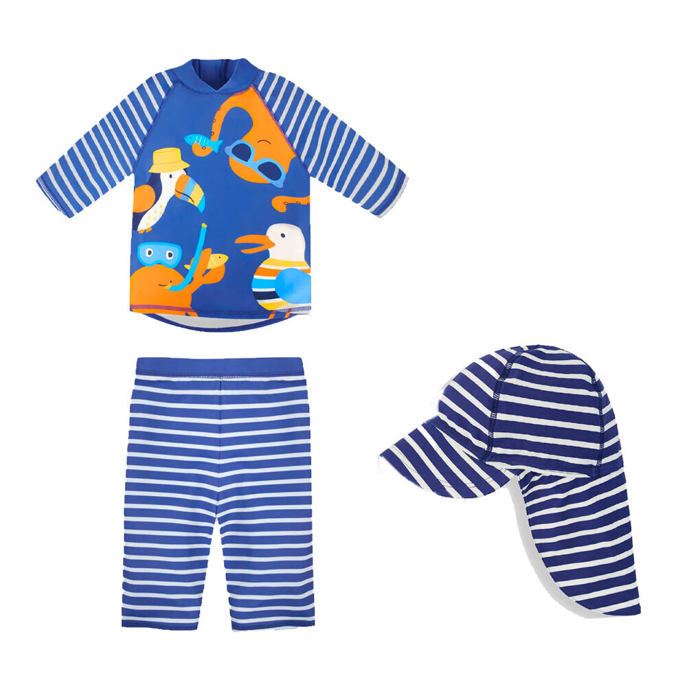 【超優惠套組】 英國 JoJo Maman BeBe 兩件式泳裝+防曬護頸遮陽帽_JJB004
