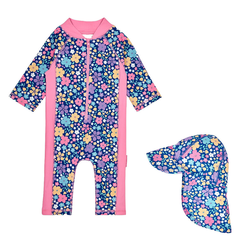 【超優惠套組】 英國 JoJo Maman BeBe 連身式泳裝+防曬護頸遮陽帽_JJG020