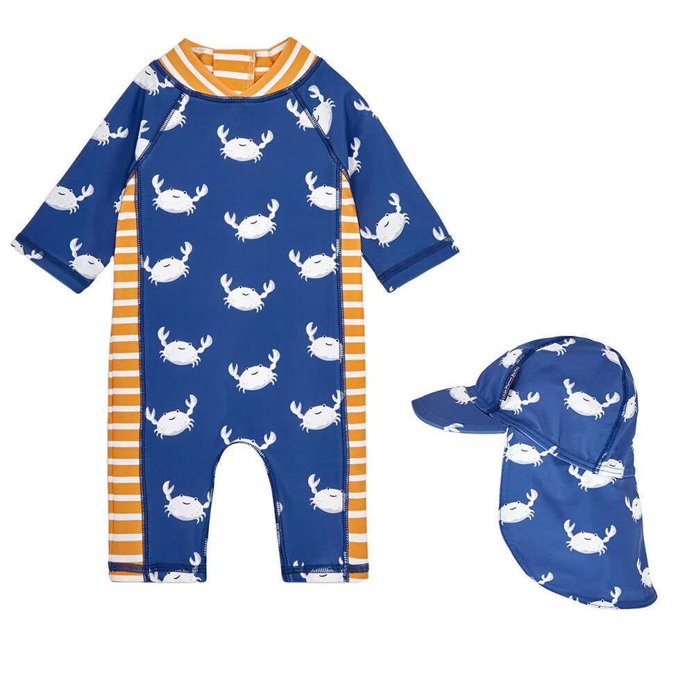【超優惠套組】 英國 JoJo Maman BeBe 連身式泳裝+防曬護頸遮陽帽_JJB014