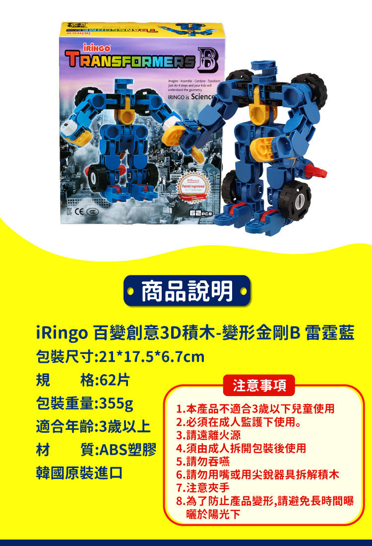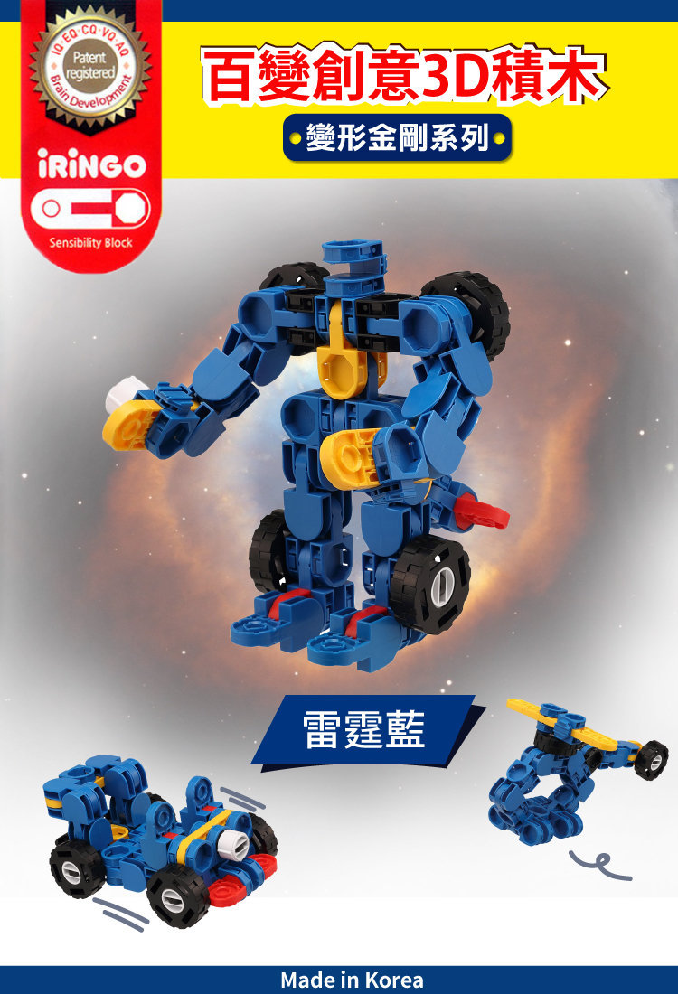 【韓國iRingo】百變創意3D積木-變形金剛B-雷霆藍(可變形&可旋轉)_iR007(總片數:62)