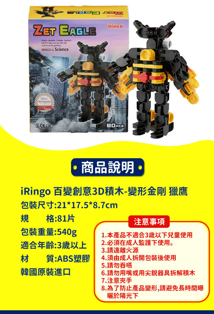 【韓國iRingo】百變創意3D積木-變形金剛ZetEagle-獵鷹 (可變形&可旋轉)_iR010(總片數:80)