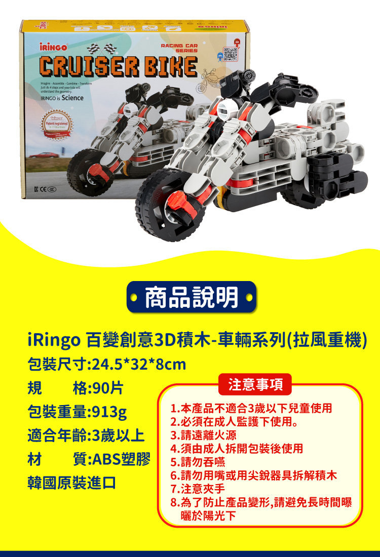 【韓國iRingo】百變創意3D積木-車輛系列(拉風重機)_iR023(總片數:90)