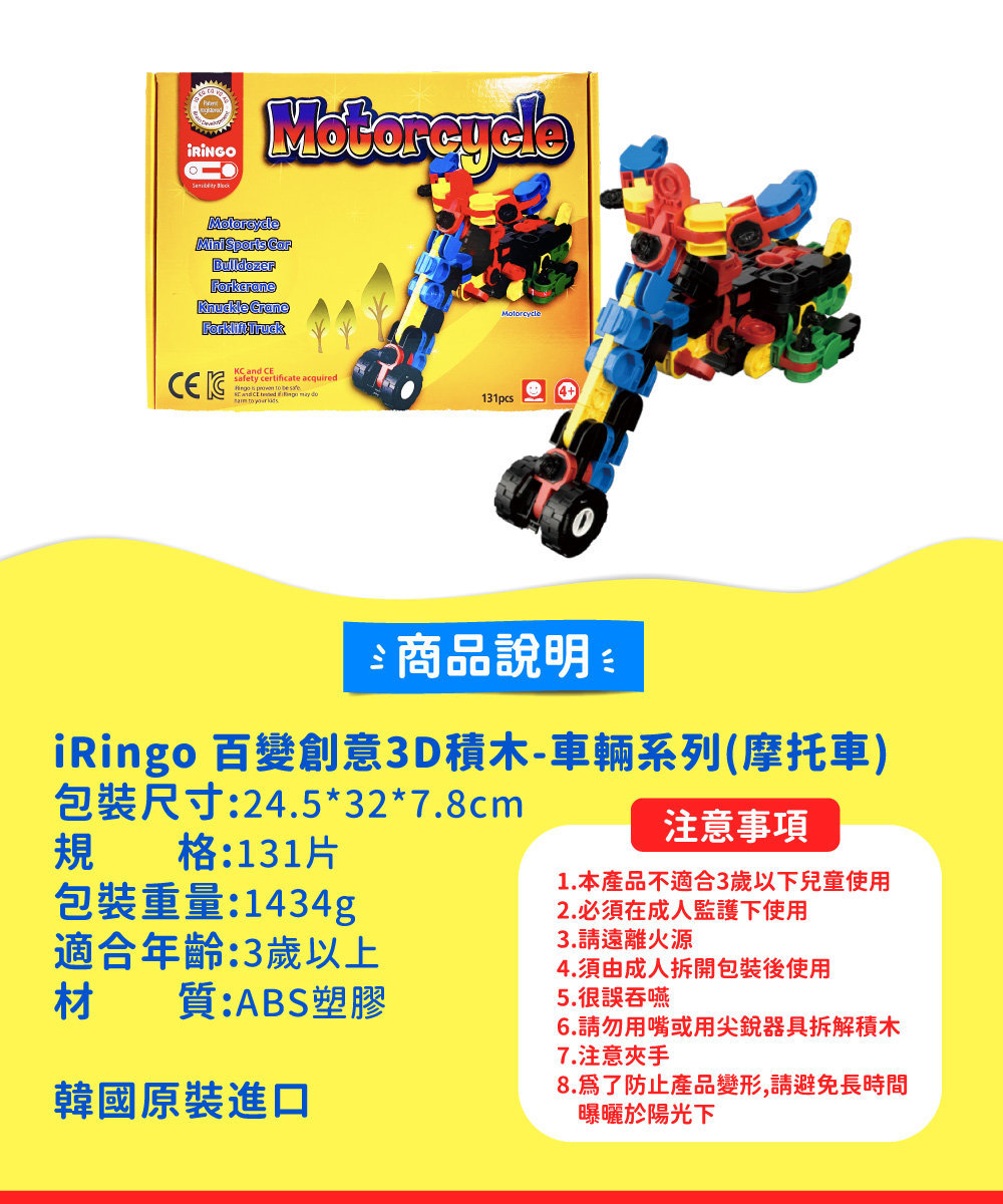 【韓國iRingo】百變創意3D積木-車輛系列(摩托車)_iR026(總片數:131)