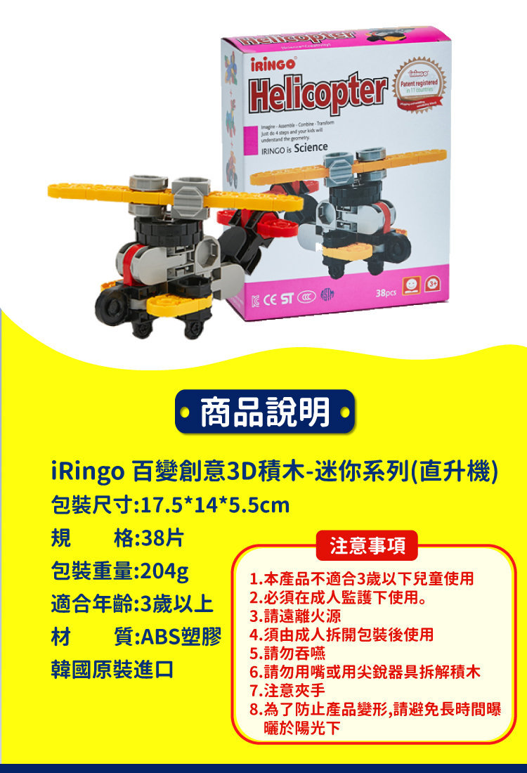 【韓國iRingo】百變創意3D積木-迷你系列(直升機)_iR004(總片數:38)