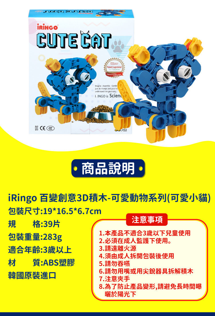 【韓國iRingo】百變創意3D積木-(可愛小貓)_iR013(總片數:39)