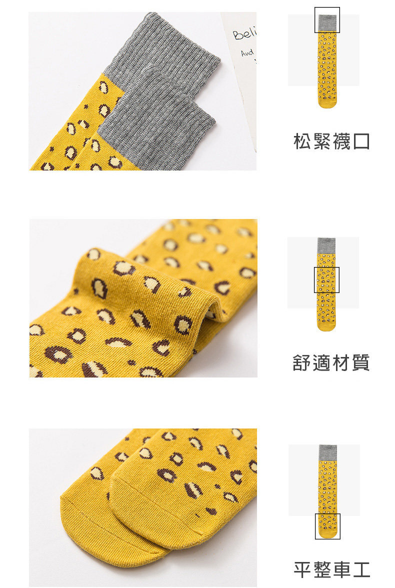 【JB DESIGN】拼色高筒豹紋襪子-白色