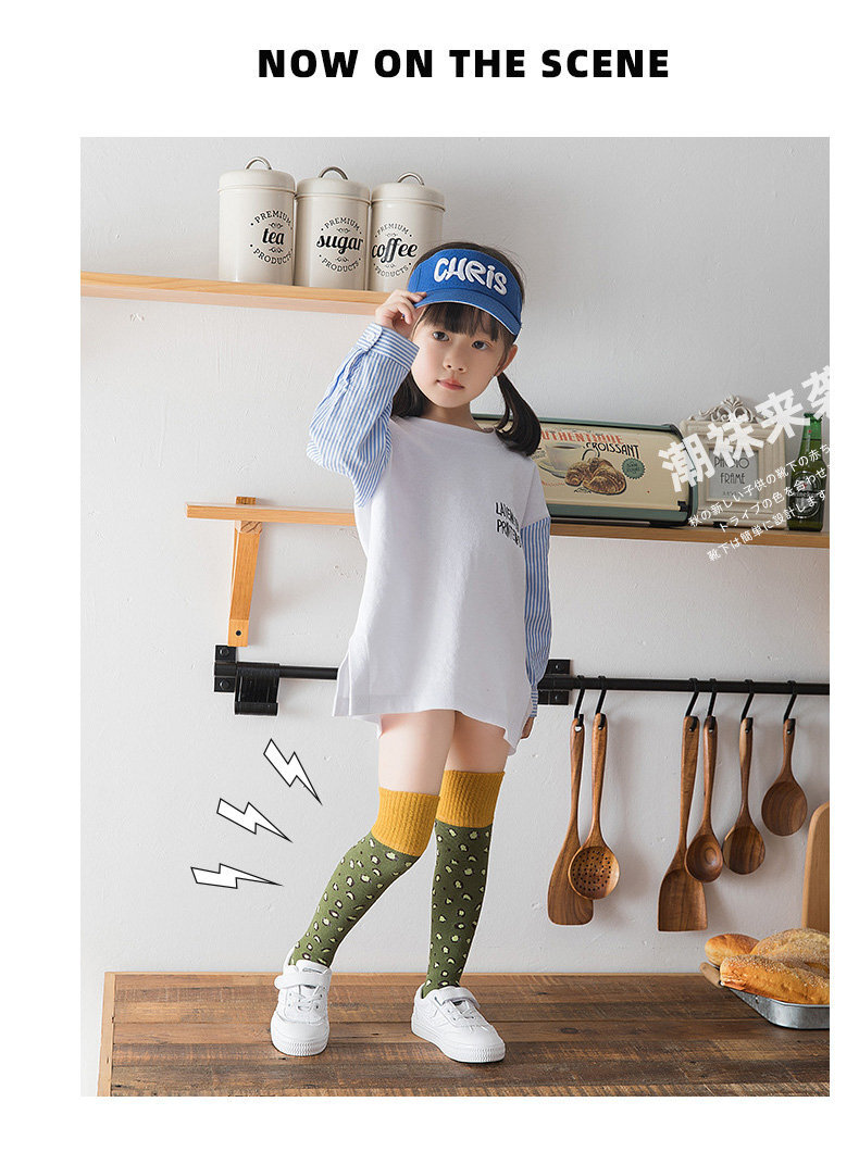 【JB DESIGN】拼色高筒豹紋襪子-黃色