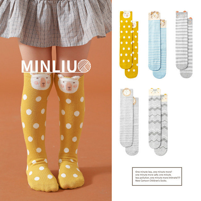 【JB DESIGN】長筒動物造型襪-灰白條紋小熊