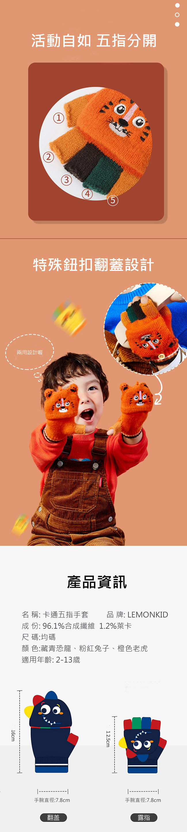 【JB DESIGN】Lemonkid-兒童針織五指手套-藏青恐龍(均碼(手腕直徑7.8cm))