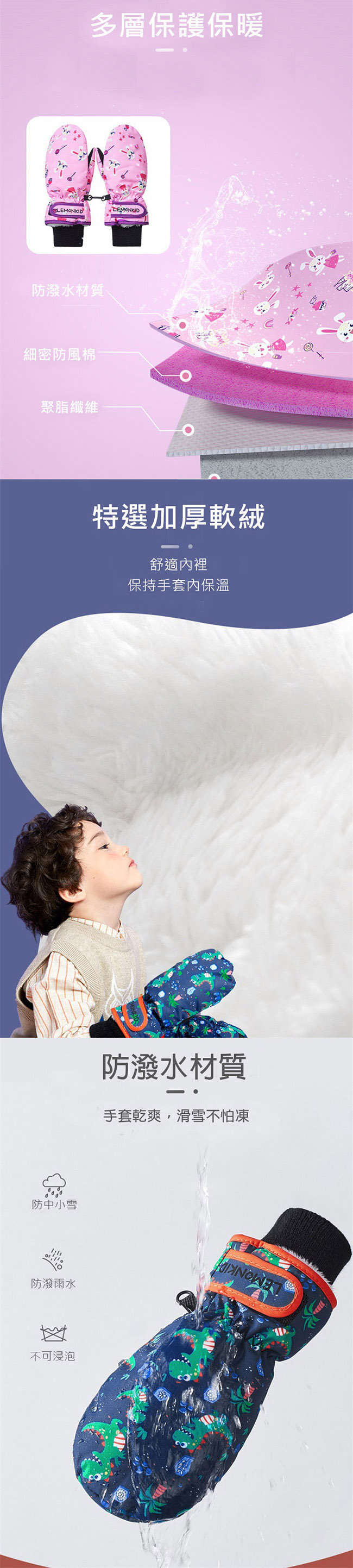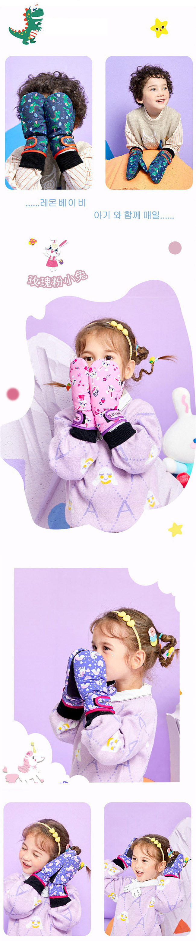 【JB DESIGN】Lemonkid-卡通圖案滑雪手套-粉小兔