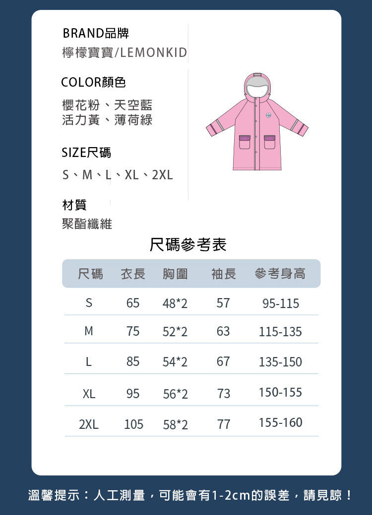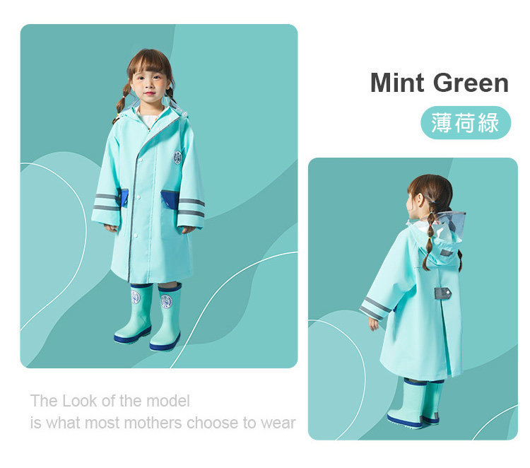 【JB DESIGN】LEMONKID-簡約英倫風純色雨衣-兒童款-薄荷綠(S/M/L)