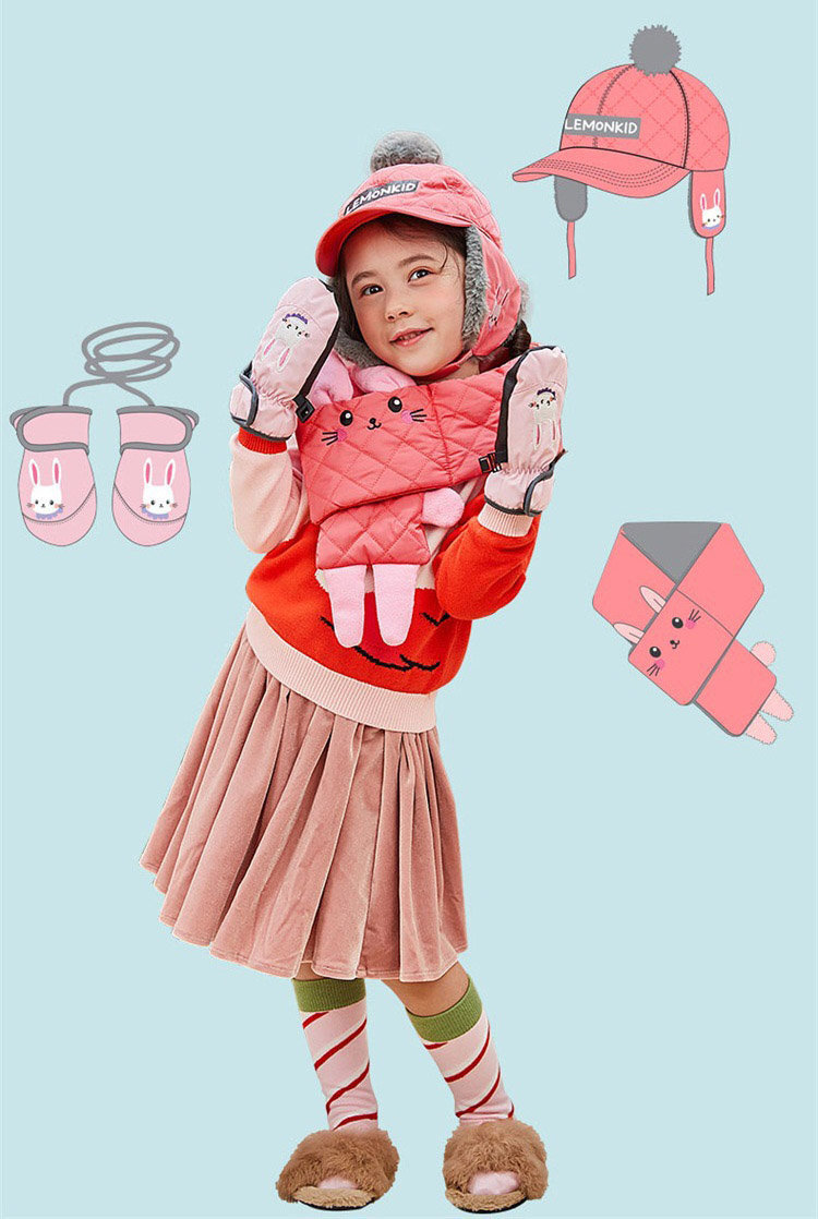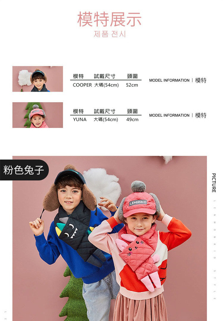 【JB DESIGN】Lemonkid-限量款-滑雪帽子圍巾二件套(圍巾+帽子)-姜黃狐狸 (52cm)