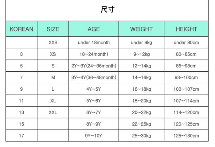 ※ 版型偏小,瘦寶建議買大1號;肉寶建議買大2號,請參考尺寸表選