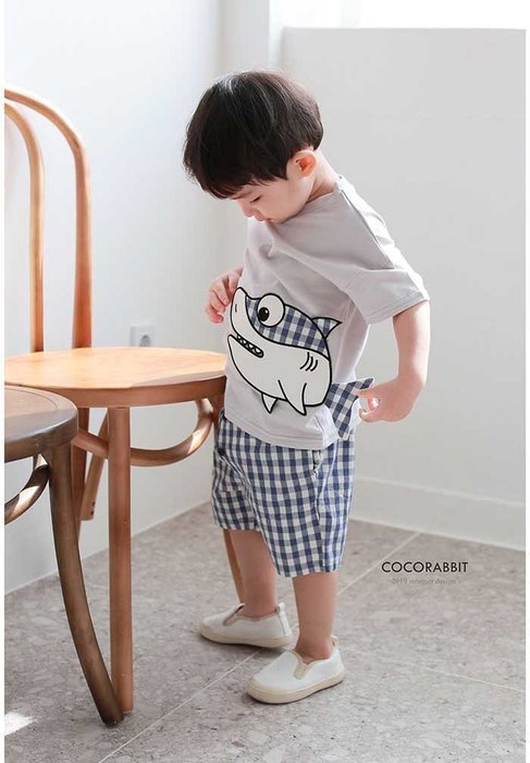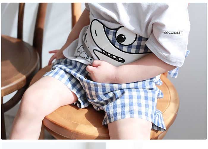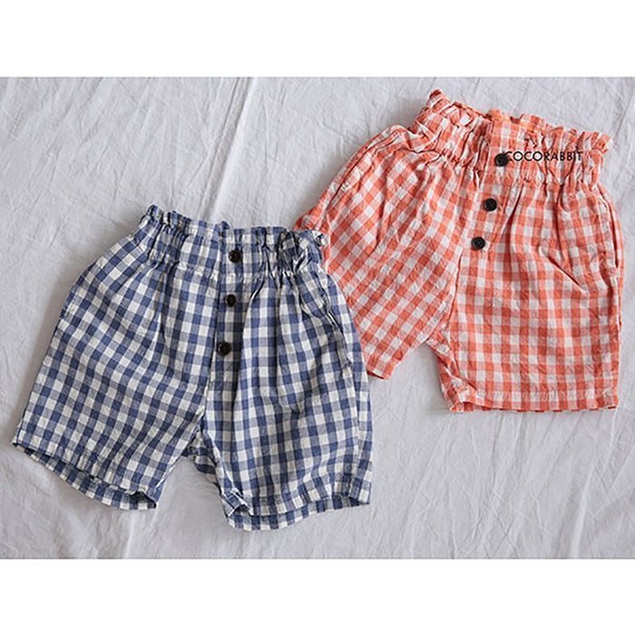 韓國熱銷童裝 - 正韓 coco rabbit 100%純棉藍白格紋短褲_cr15