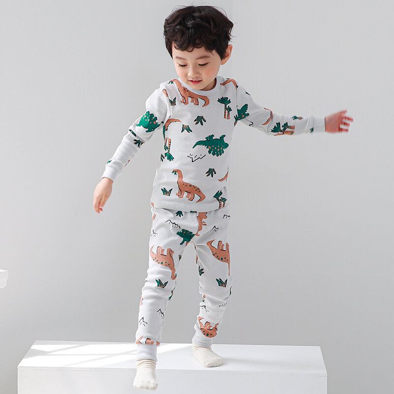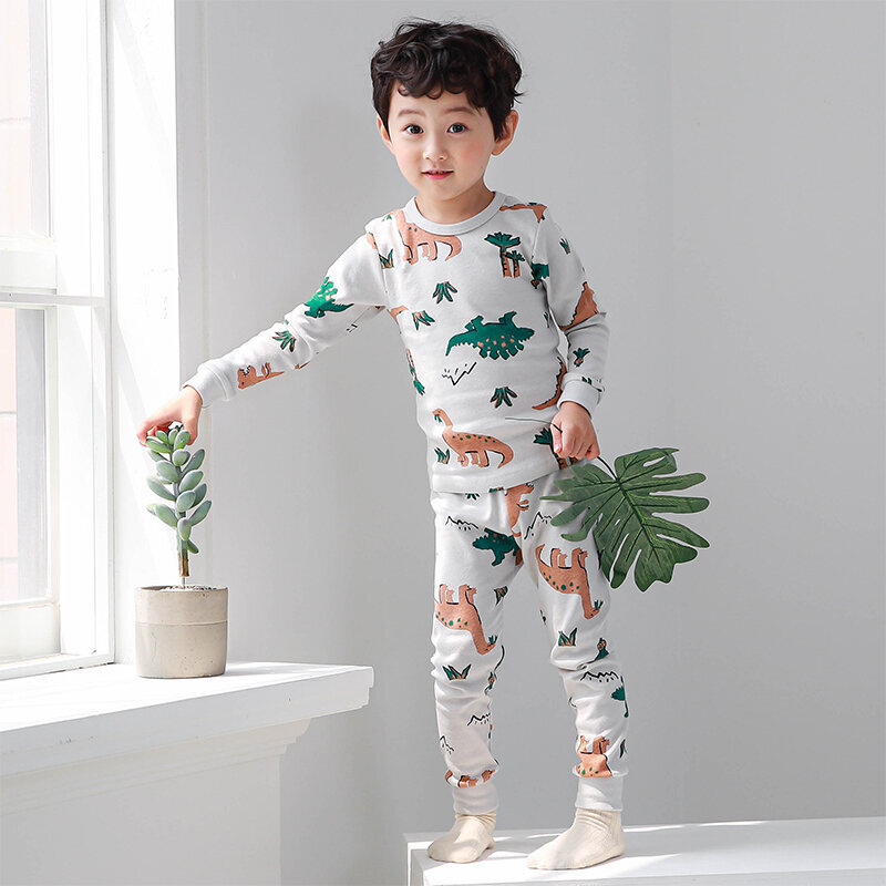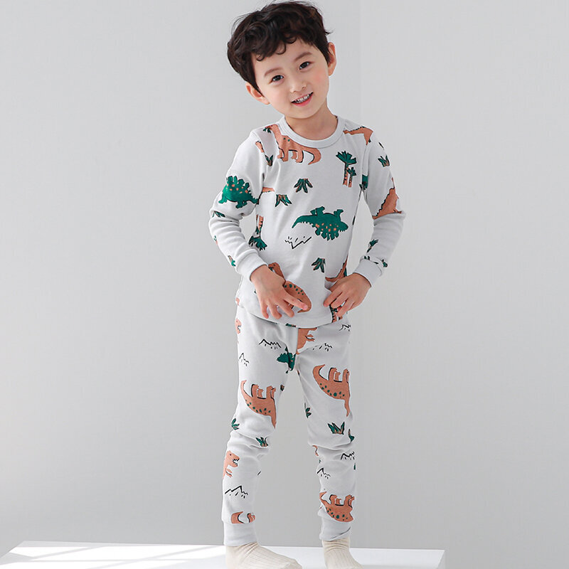 正韓 Cogibu 極舒適無螢光劑 100% 有機棉幼兒/兒童睡衣/家居服套裝組_恐龍_CGA001