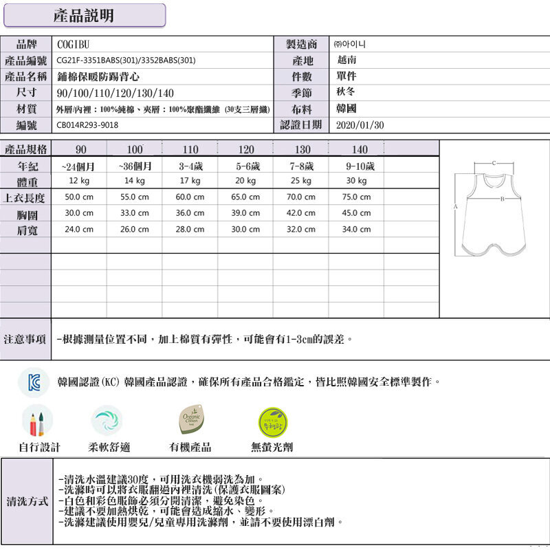 * 100%純棉。內外層之間放入暖和棉花,透氣不厚重、保暖不悶熱。
