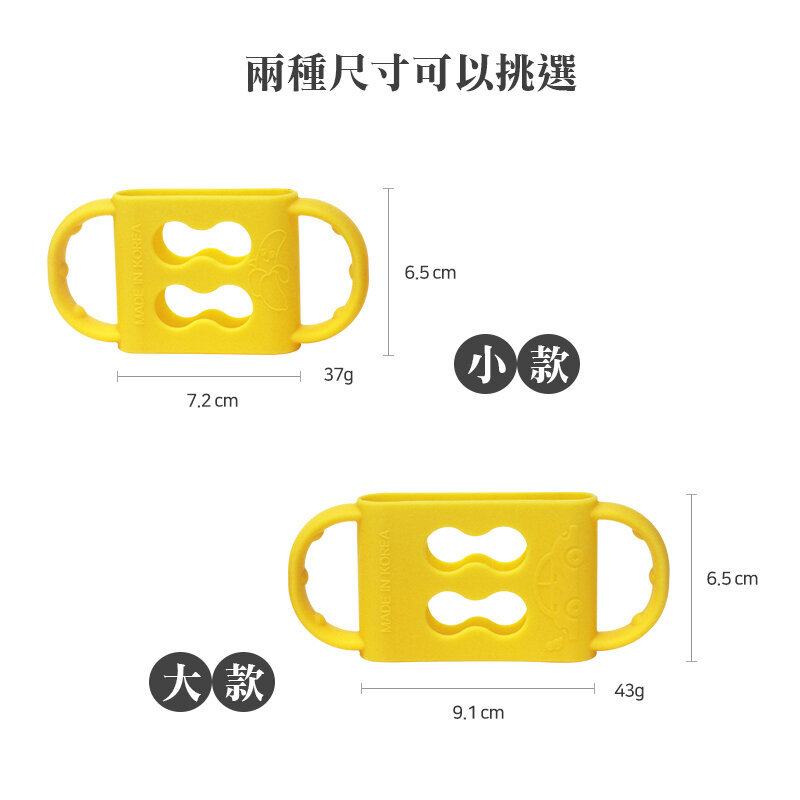 * 有2種尺寸可根據奶瓶大小形狀做挑選,矽膠伸縮有彈性的特性能符合家中所有奶瓶、水壺。