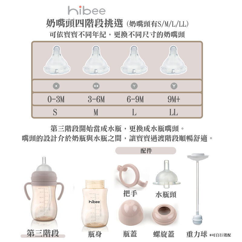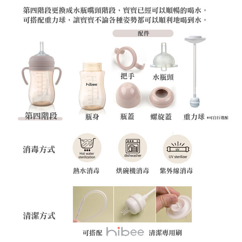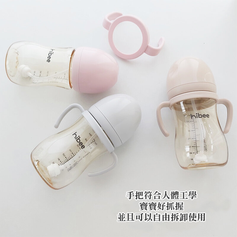 正韓 hibee 蜜糖Q瓶 仿媽咪乳房感 PPSU 防脹氣寬口奶瓶/水瓶270ml_含重力球吸管與把手_灰_HB1G (附吸管刷)