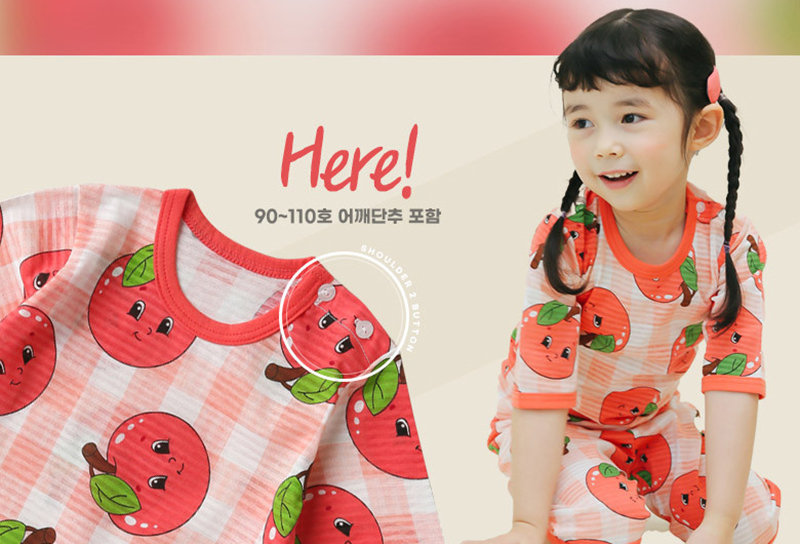 正韓 Puco 超優質嬰幼兒/兒童七分袖100% 有機純棉家居服/睡衣_蘋果女孩_PC21-005
