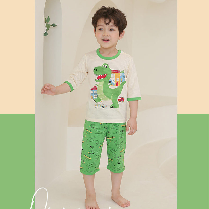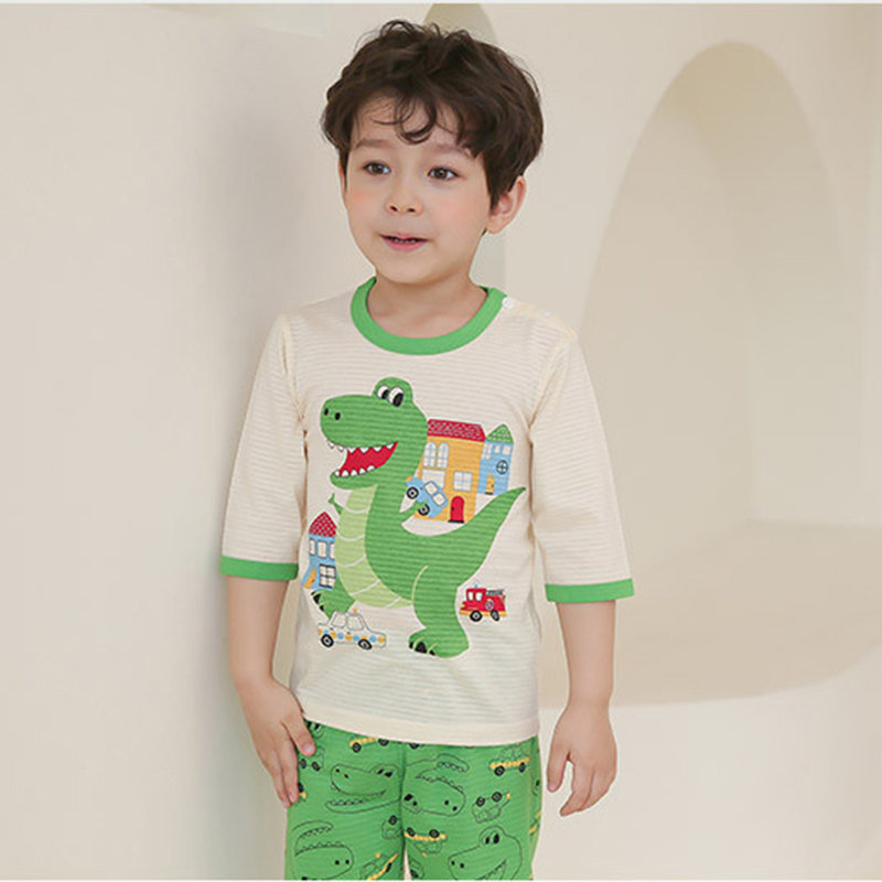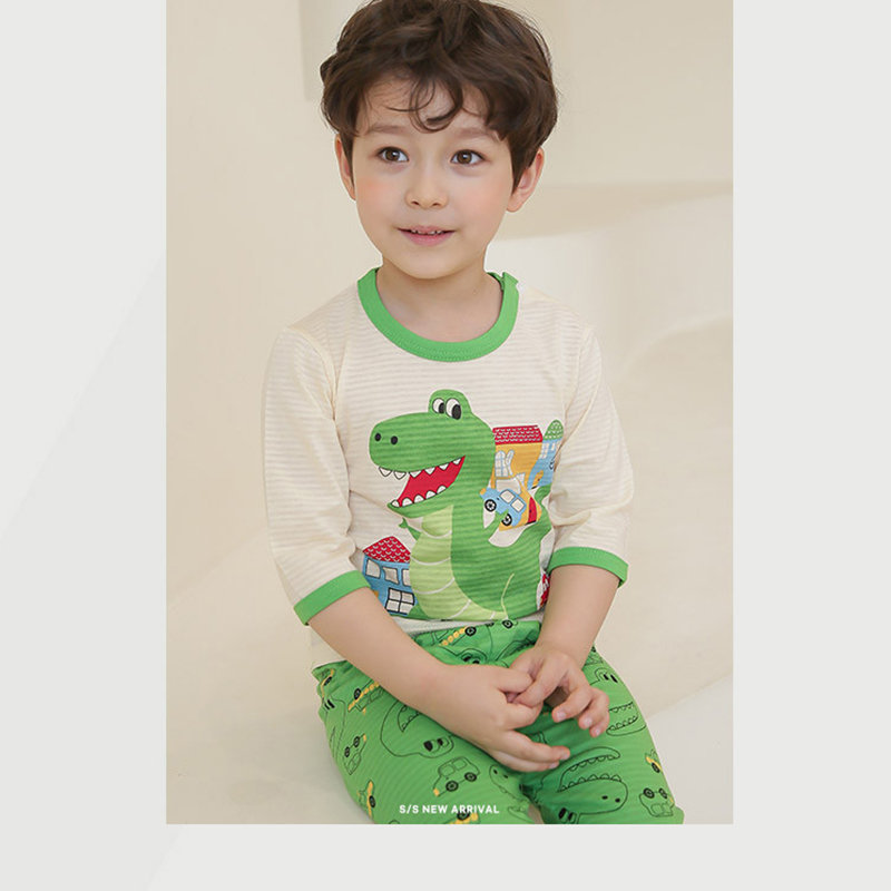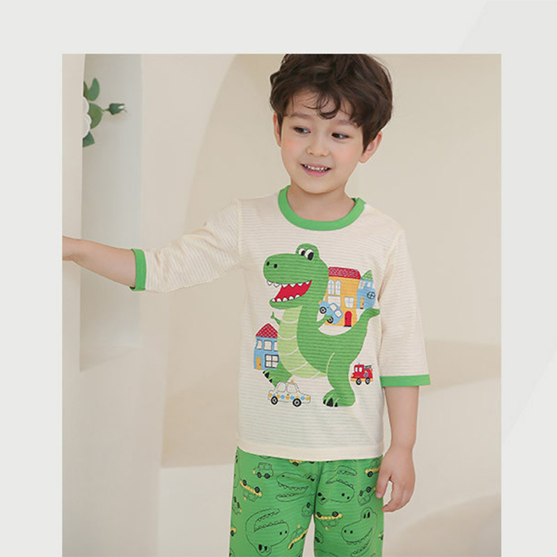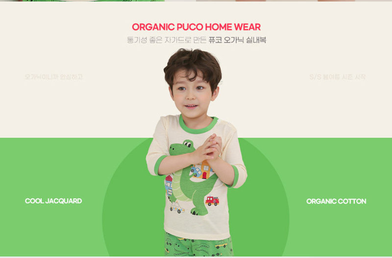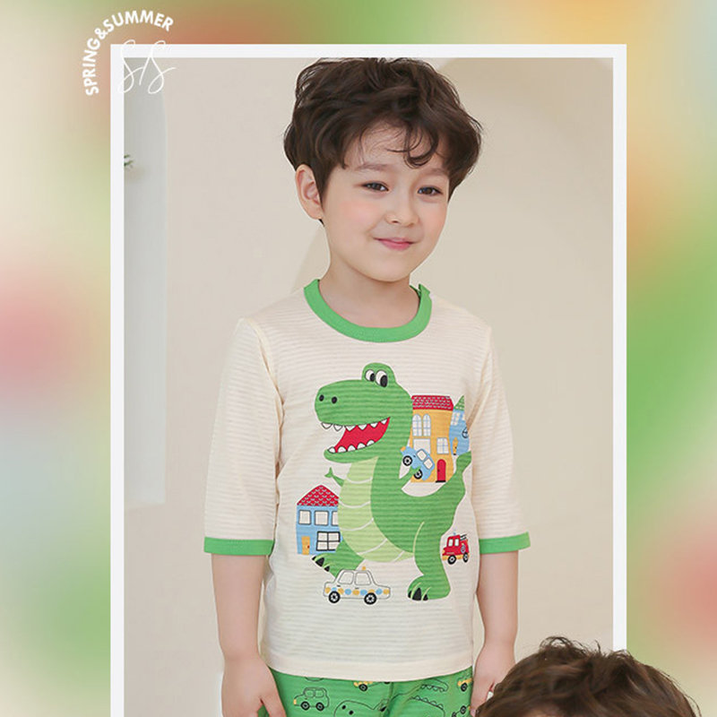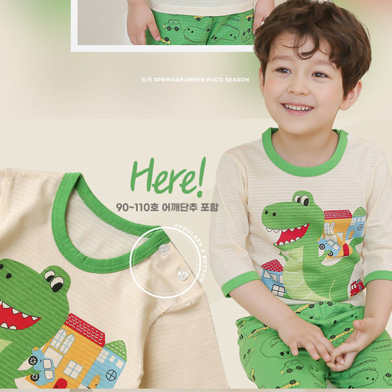 正韓 Puco 超優質嬰幼兒/兒童七分袖100% 有機純棉家居服/睡衣_暴龍來襲_PC21-013
