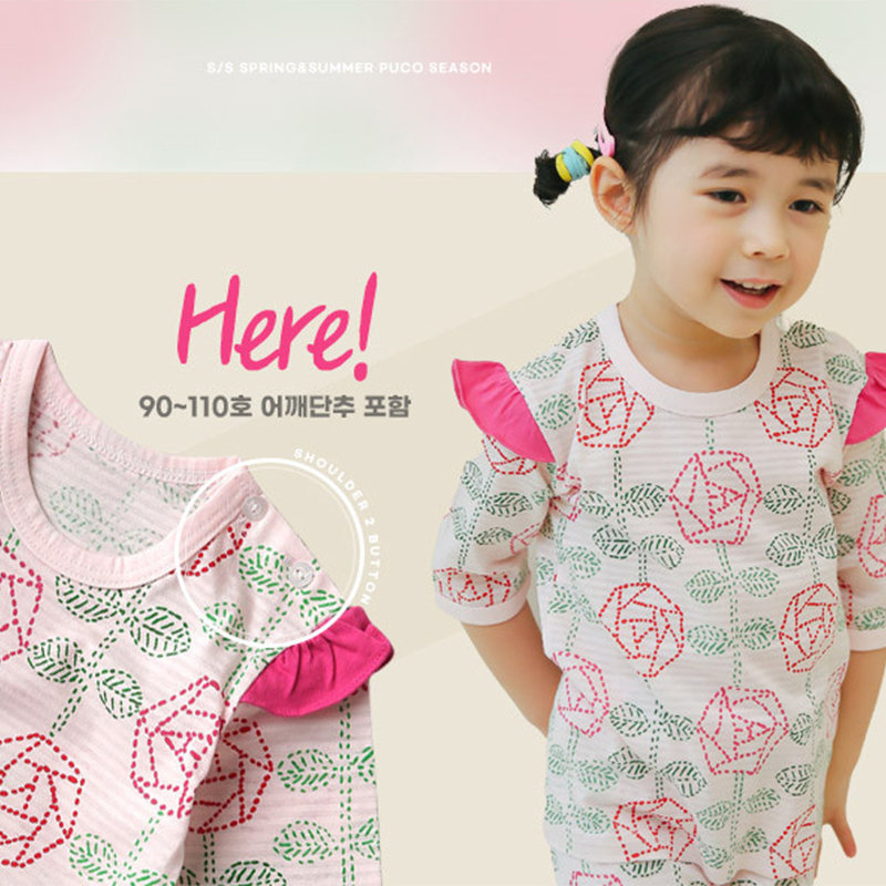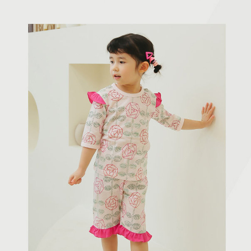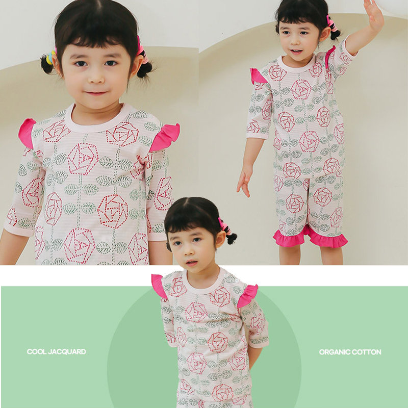 正韓 Puco 超優質嬰幼兒/兒童七分袖100% 有機純棉家居服/睡衣_玫瑰花園_PC21-018