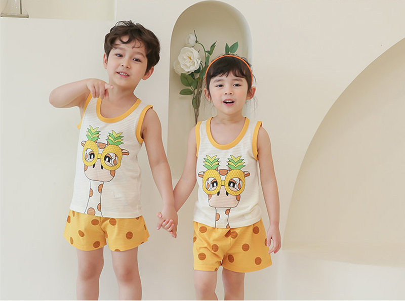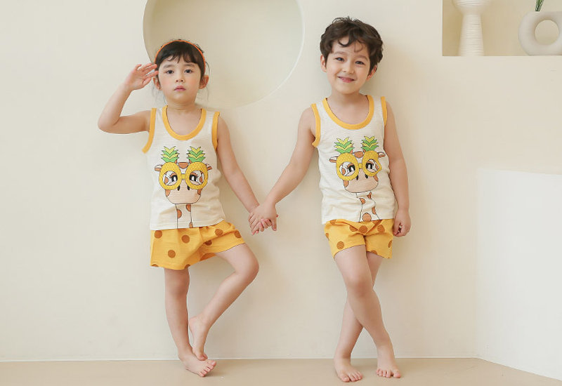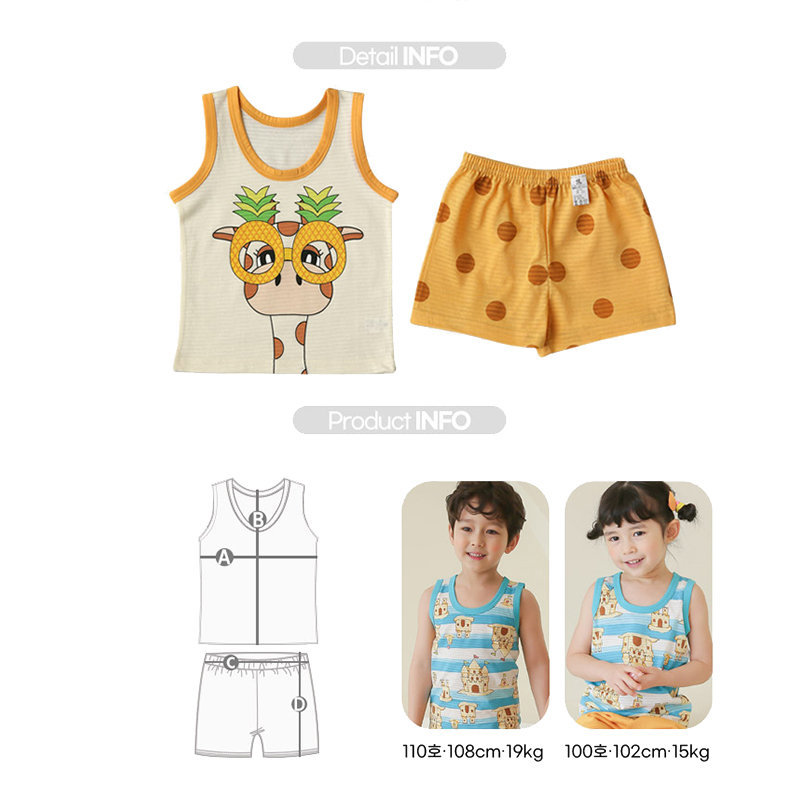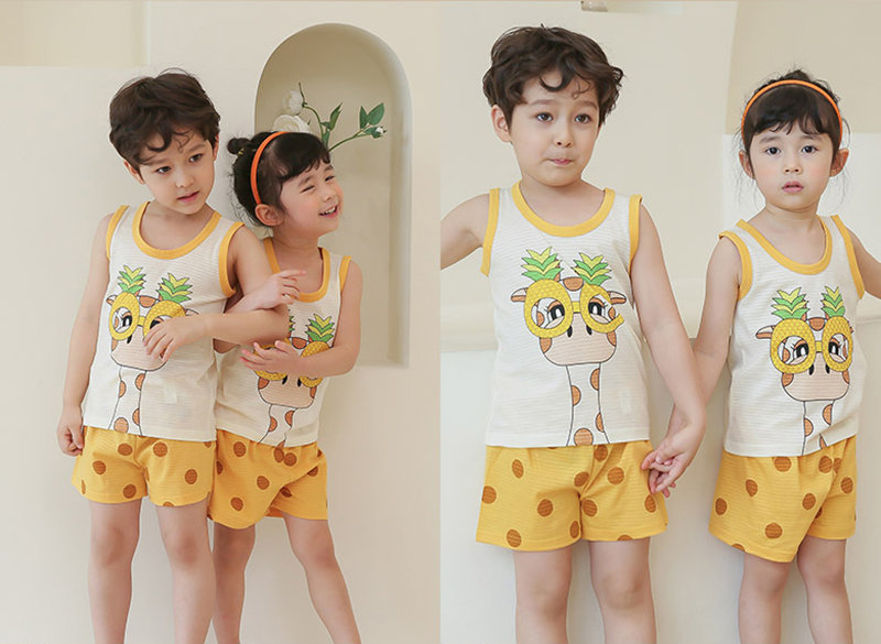 正韓 Puco 超優質嬰幼兒/兒童無袖100% 有機棉家居服/睡衣_我愛長頸鹿_PCS21-005