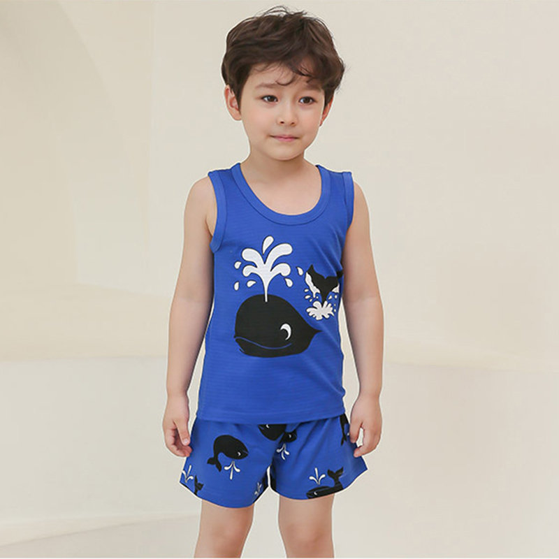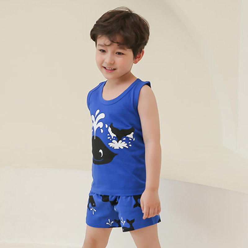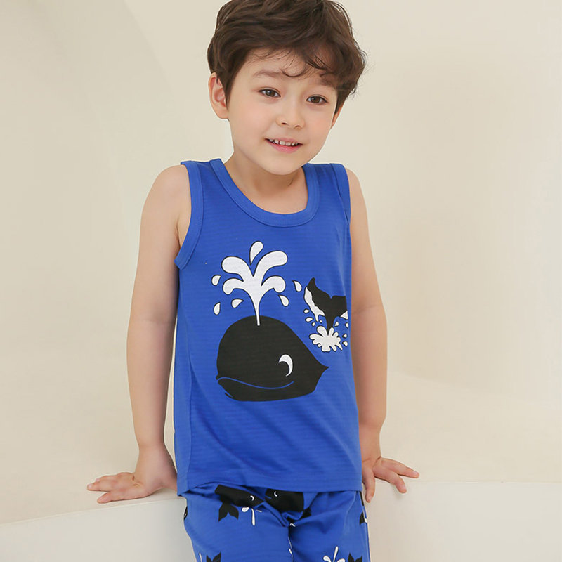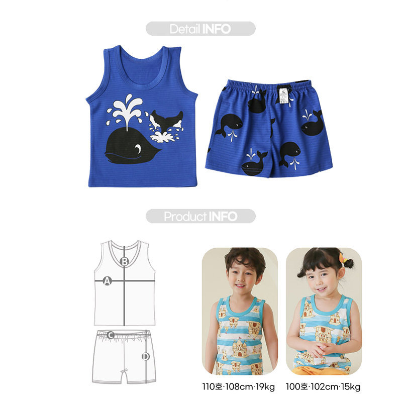正韓 Puco 超優質嬰幼兒/兒童無袖100% 有機棉家居服/睡衣_鯨魚噴水_PCS21-006