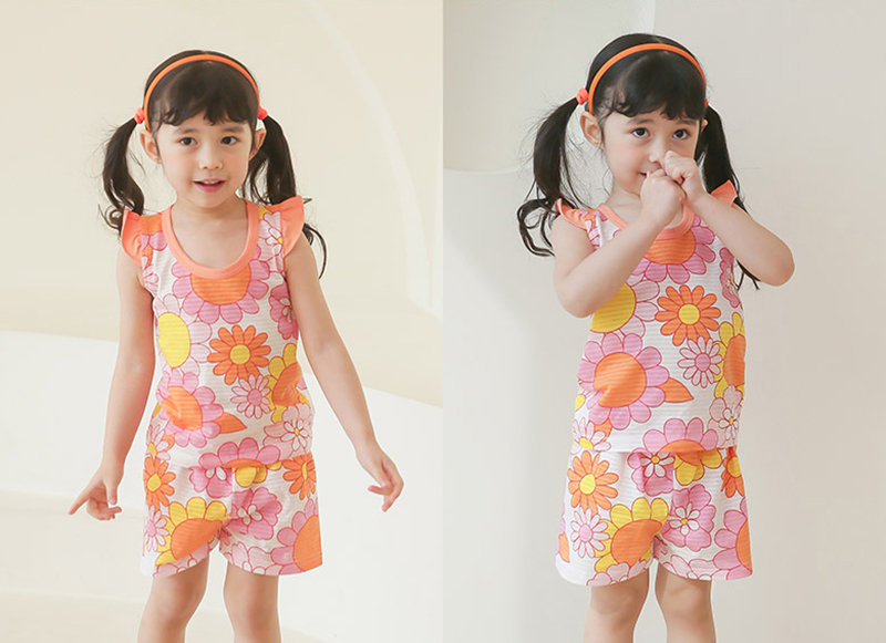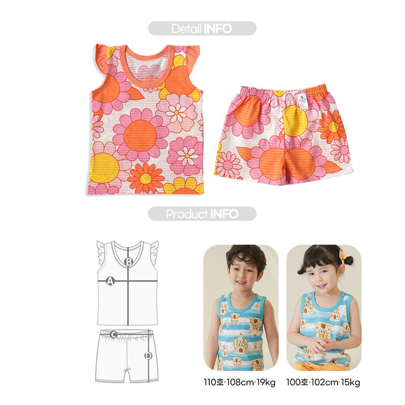 正韓 Puco 超優質嬰幼兒/兒童無袖100% 有機棉家居服/睡衣_花花世界_PCS21-010
