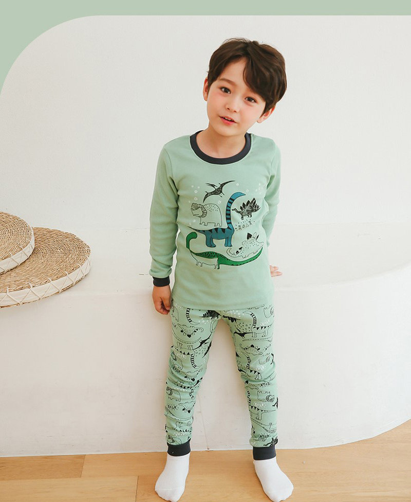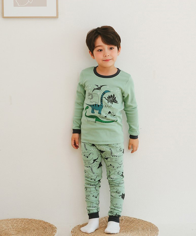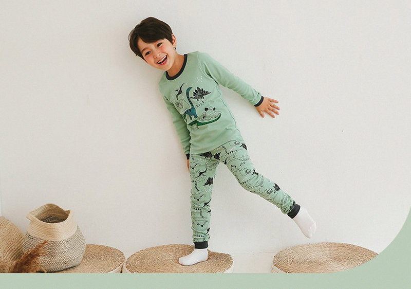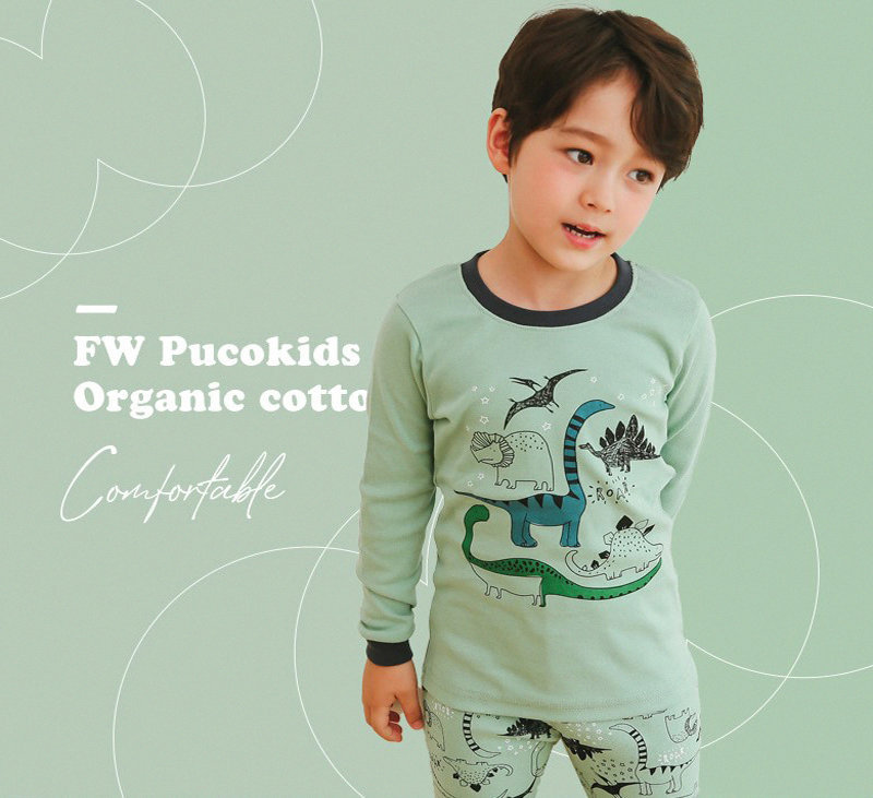 正韓 Puco 超優質嬰幼兒/兒童長袖有機棉家居服/睡衣_恐龍塗鴉_PC21-032