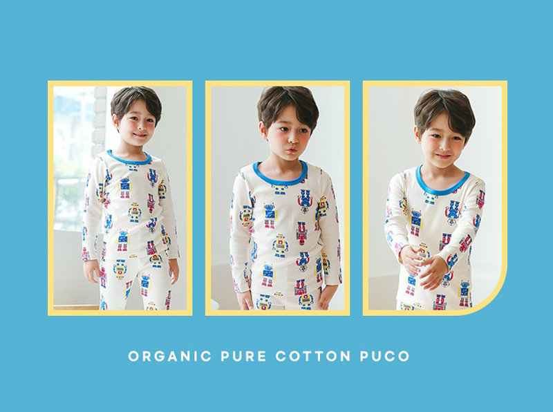 正韓 Puco 超優質嬰幼兒/兒童長袖有機棉家居服/睡衣_機器人_PC21-035