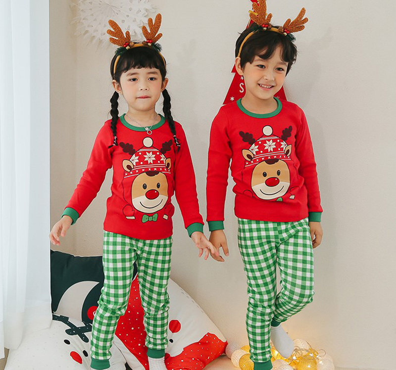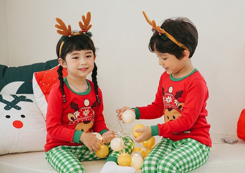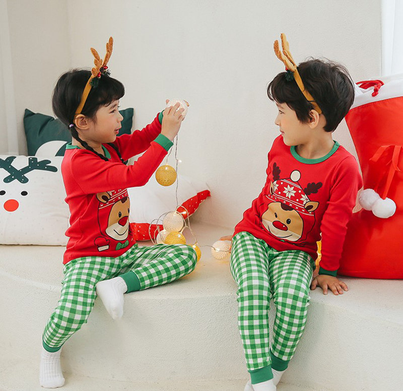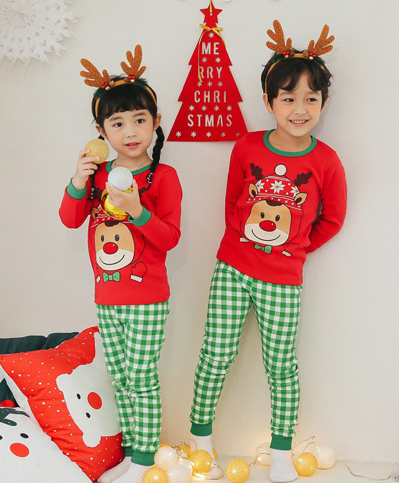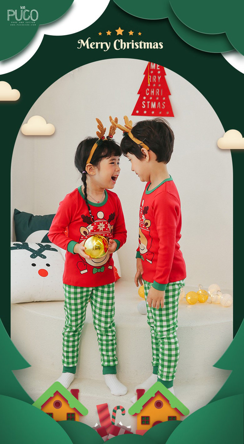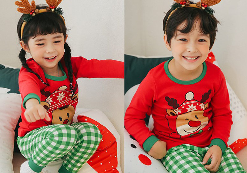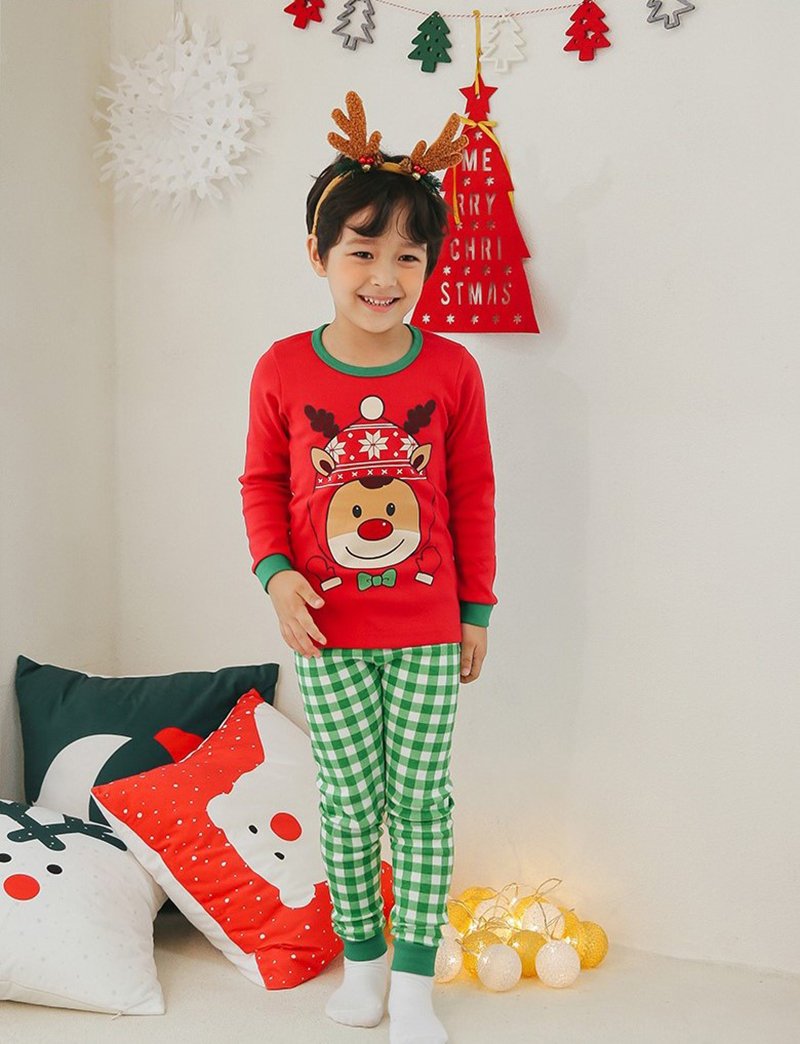 正韓 Puco 超優質嬰幼兒/兒童長袖100% 有機純棉家居服/睡衣_紅帽麋鹿_PC21-023(大童款)