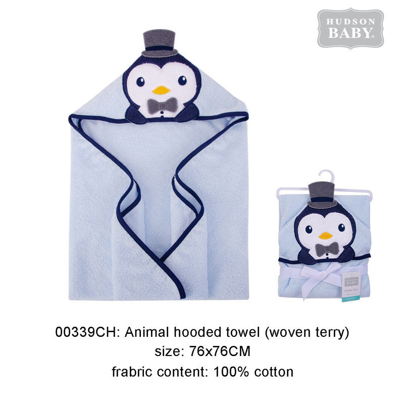 美國 luvable friends 100% 純棉嬰幼兒動物造型連帽浴巾/包巾_藍企鵝 (LF00339)