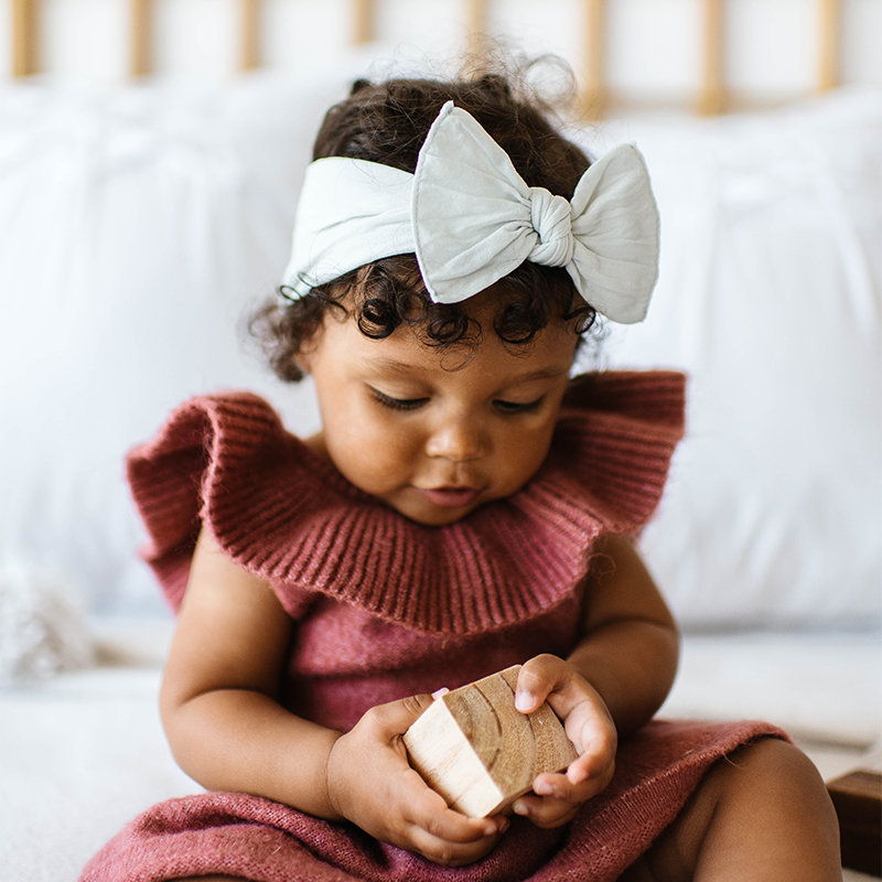 美國 baby bling 純手工極優雅細緻輕柔微彈性/毫無束縛感蝴蝶結髮帶/髮飾_經典款_霧灰_BBCK023