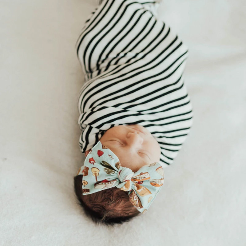 美國 baby bling 純手工極優雅細緻輕柔微彈性/毫無束縛感蝴蝶結髮帶/髮飾_印花款_露營樂園(BBRK036)