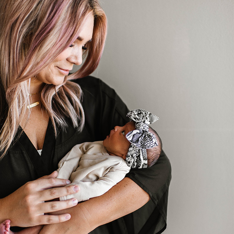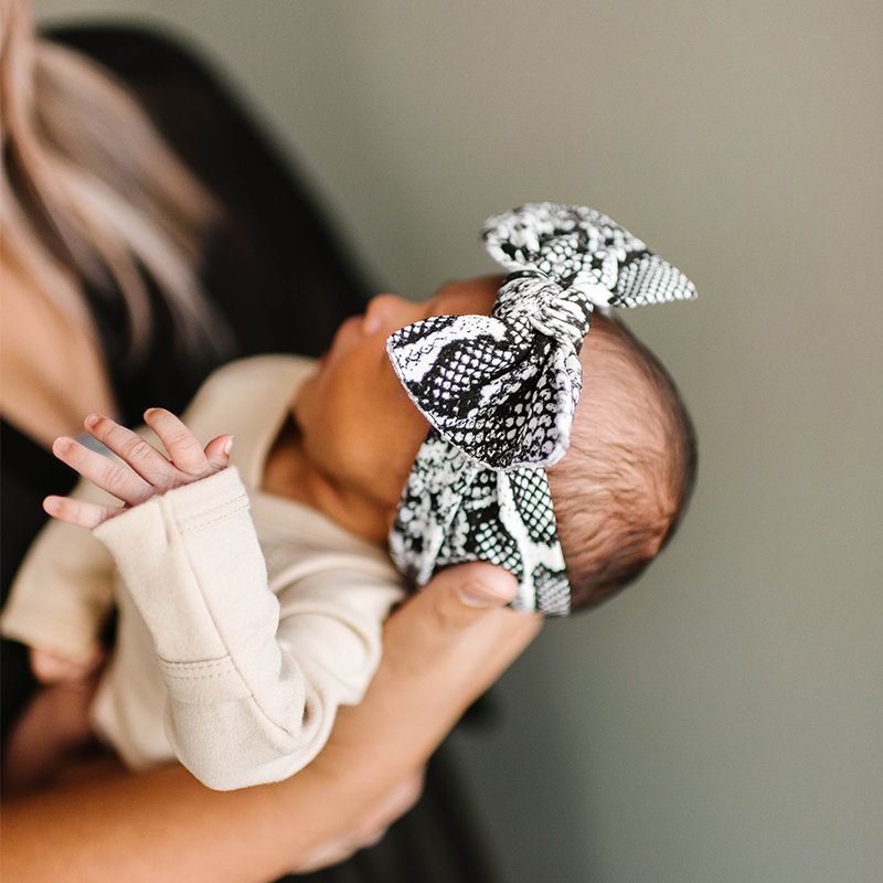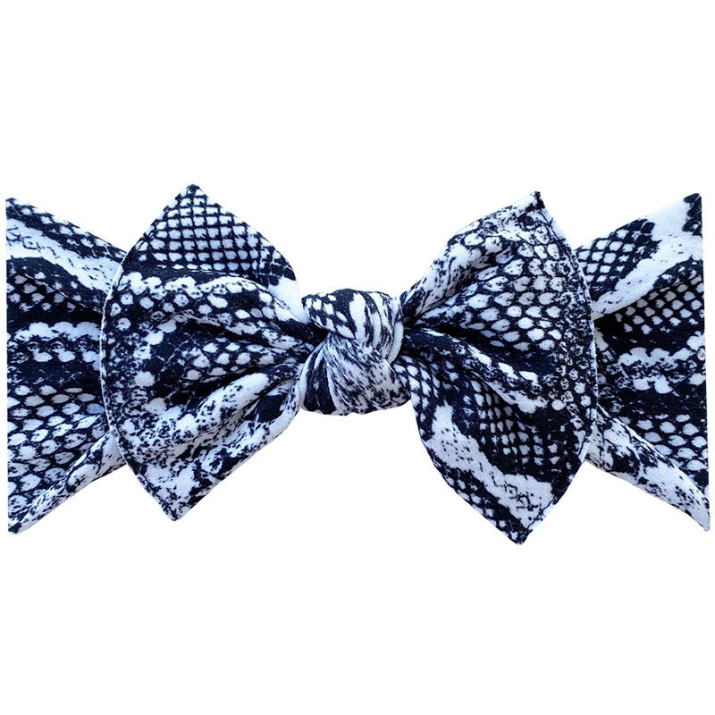 美國 baby bling 純手工極優雅細緻輕柔微彈性/毫無束縛感蝴蝶結髮帶/髮飾_印花款_黑白蛇紋_BBRK048