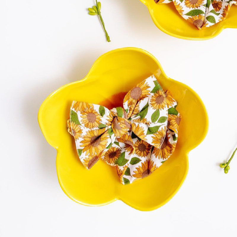 美國 baby bling 純手工極優雅細緻輕柔微彈性/毫無束縛感蝴蝶結髮帶/髮飾_印花經典款_向日葵(BBRK059)