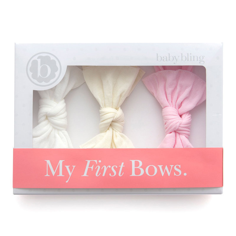 美國 baby bling 純手工極優雅細緻輕柔微彈性/毫無束縛感蝴蝶結髮帶/髮飾禮盒組_香草冰淇淋_BB00035