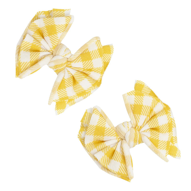 美國 baby bling 蝴蝶結髮飾/髮夾2入組_黃白格子(BBPB003)